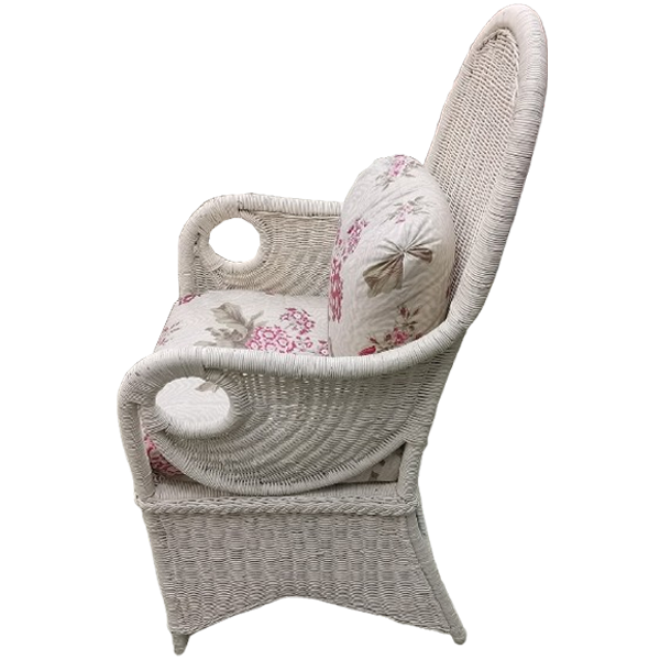 Vintage White Wicker Chair w/Custom Floral Cushions