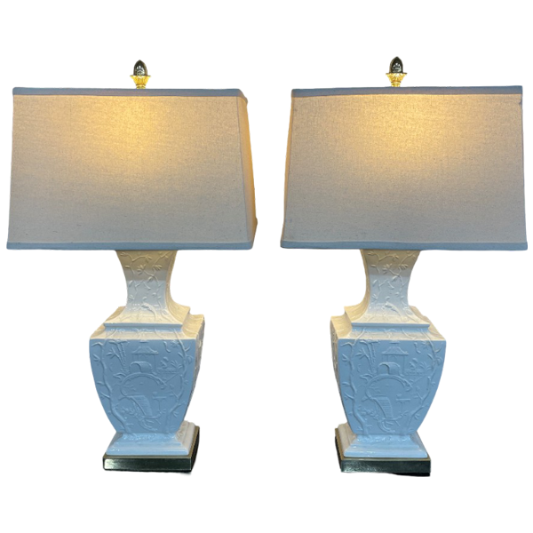 Pair of Asian White Porcelain Table Lamps