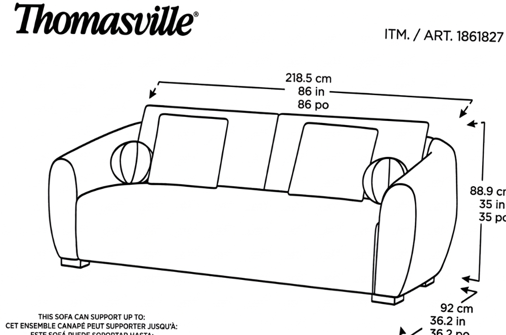 86"W x 36.2"D x 35"H